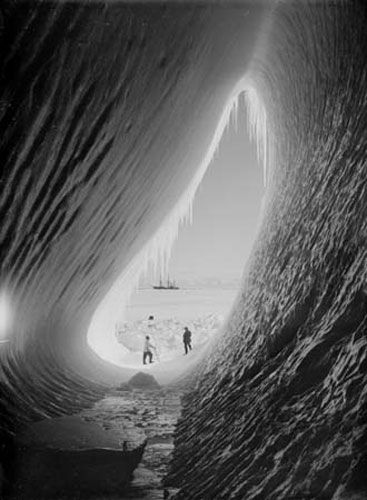 Grotto in iceberg during the British expedition of Antarctica, 1911.
